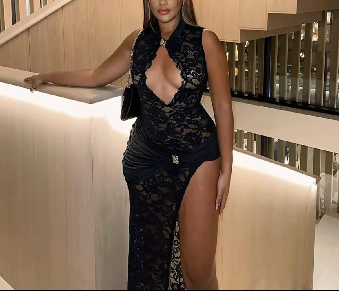Robe longue en dentelles, elle épousera vos courbes avec merveilles rien de plus pour briller dans vos soirée